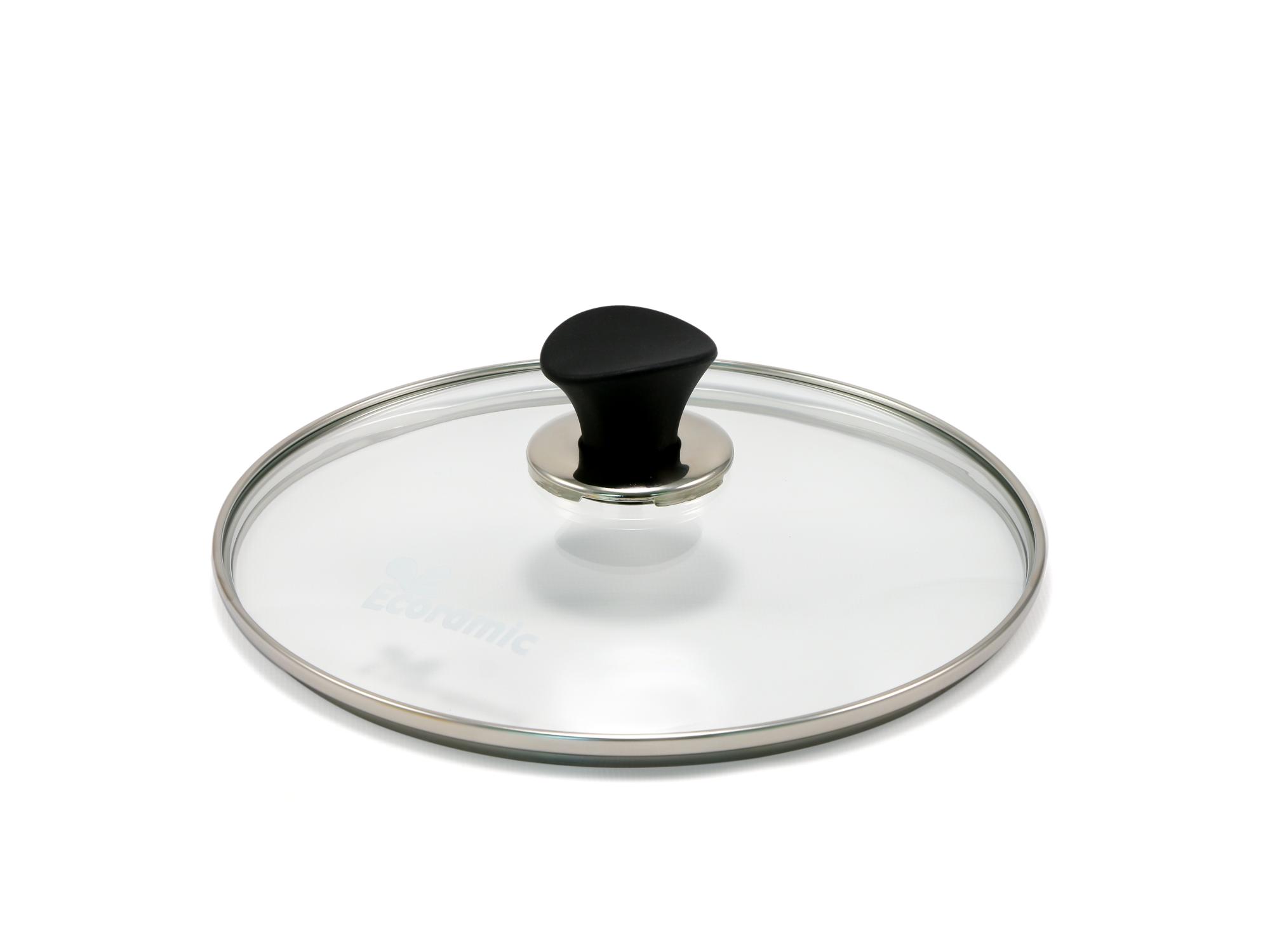 Крышка для сковород Ecoramic обрамлена ободком из нержавеющей стали который защищает края стеклянной крышки от сколов, ударов и других механических повреждений, а также обеспечивает плотное пролегание крышки к кастрюле или сковородке.