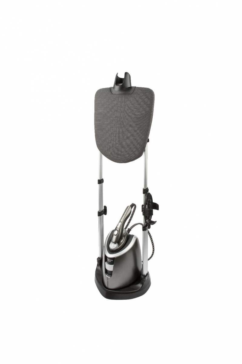 Модель HI-9000 относится к отпаривателям стационарного типа. Вес устройства составляет всего 7 кг. В комплект поставки входит массивная устойчивая платформа, на которую устанавливается парогенератор и две телескопические трубки для удобной регулировки высоты. На одной из трубок можно установить крепление для утюжка (на любой подходящей высоте). Сверху на стойки крепится объемная вешалка в виде небольшой гладильной доски.