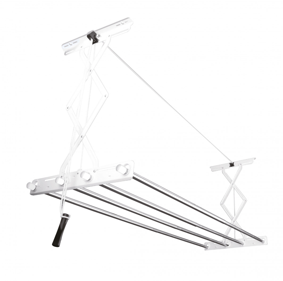 9. Для подъема или опускания, сначала потяните ручку вниз и потом на необходимой высоте отведите ручку в сторону (от сушки вдоль перекладин) и резко отпустите.