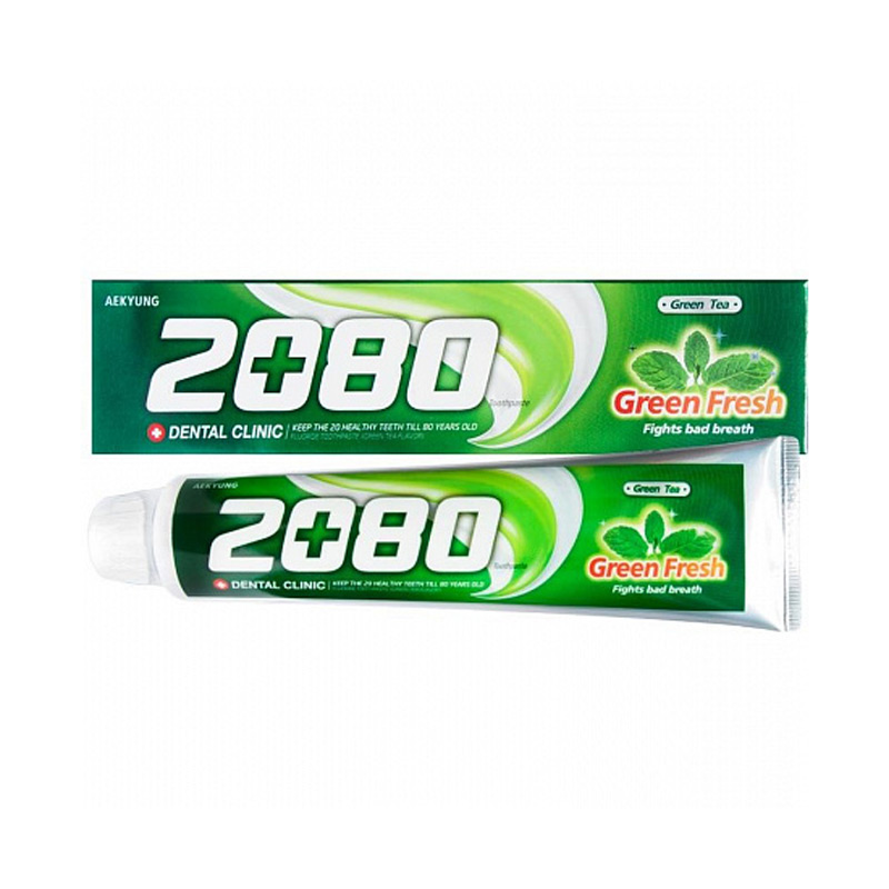 Dental Clinic 2080 Green Fresh Зеленый Чай - это зубная паста, предназначенная для использования всей семьей. Она обеспечивает надежную защиту от кариеса, бережное отбеливание и свежесть дыхания.